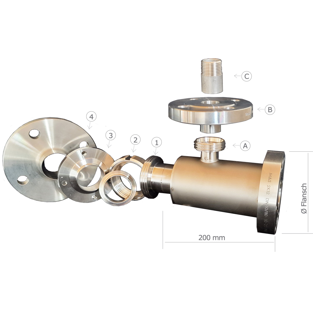 Jede andere Anschlussvariante, wie z. Bsp. Clamp, Bördel-Losflansch ect. ist möglich.