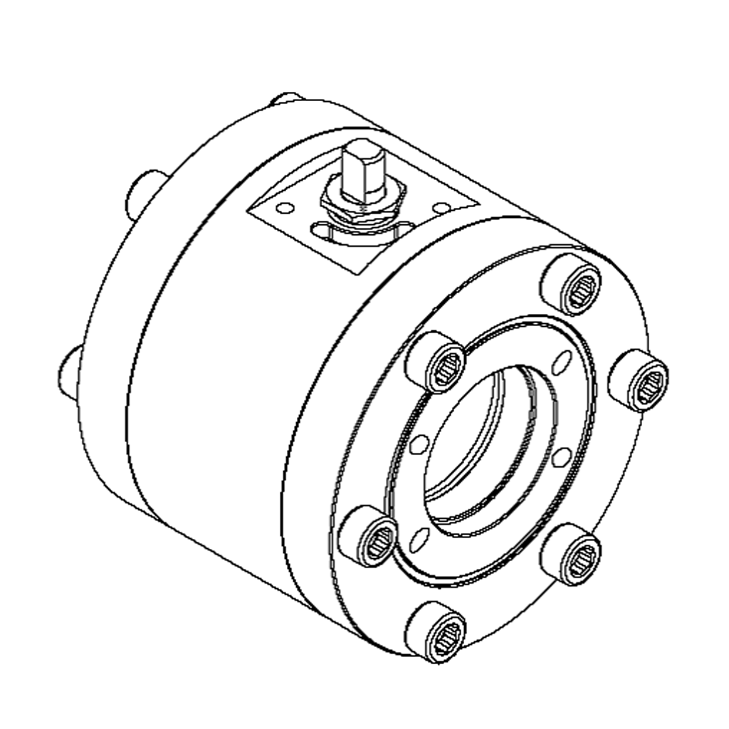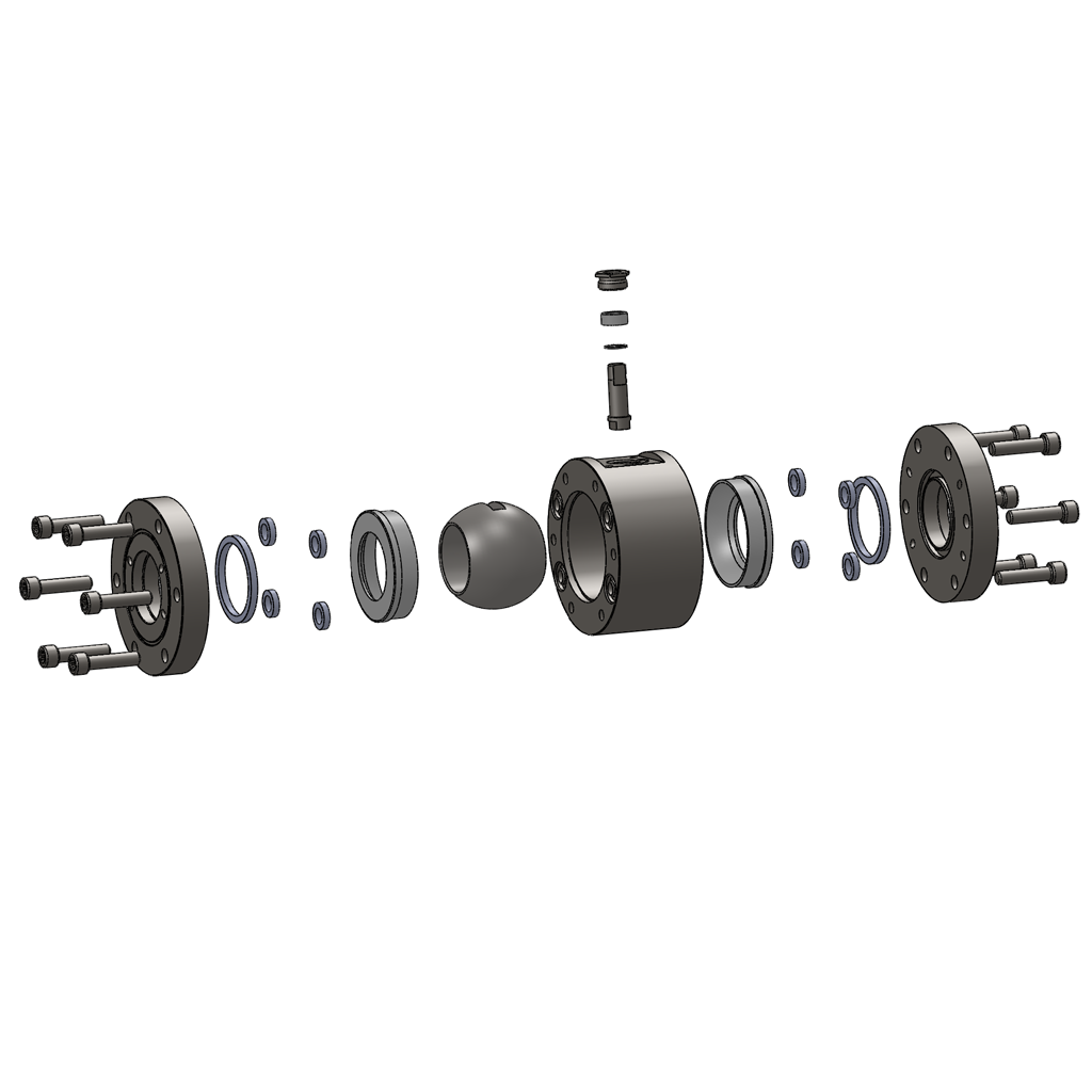 Kompakt-Kugelhahn mit vollem Durchgang und 4 durchgehenden Temperierkanälen und doppelwandigen Anschlußflanschen in 1.4404