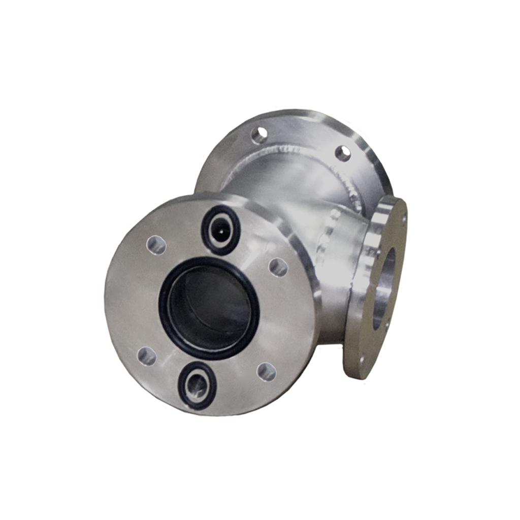 bestehend aus 2 T-Stücken und Spezialflanschverbindungen mit 4 Kanälen im Rohraußenmantel zur Temperierung (heizen/kühlen) des Produktes.